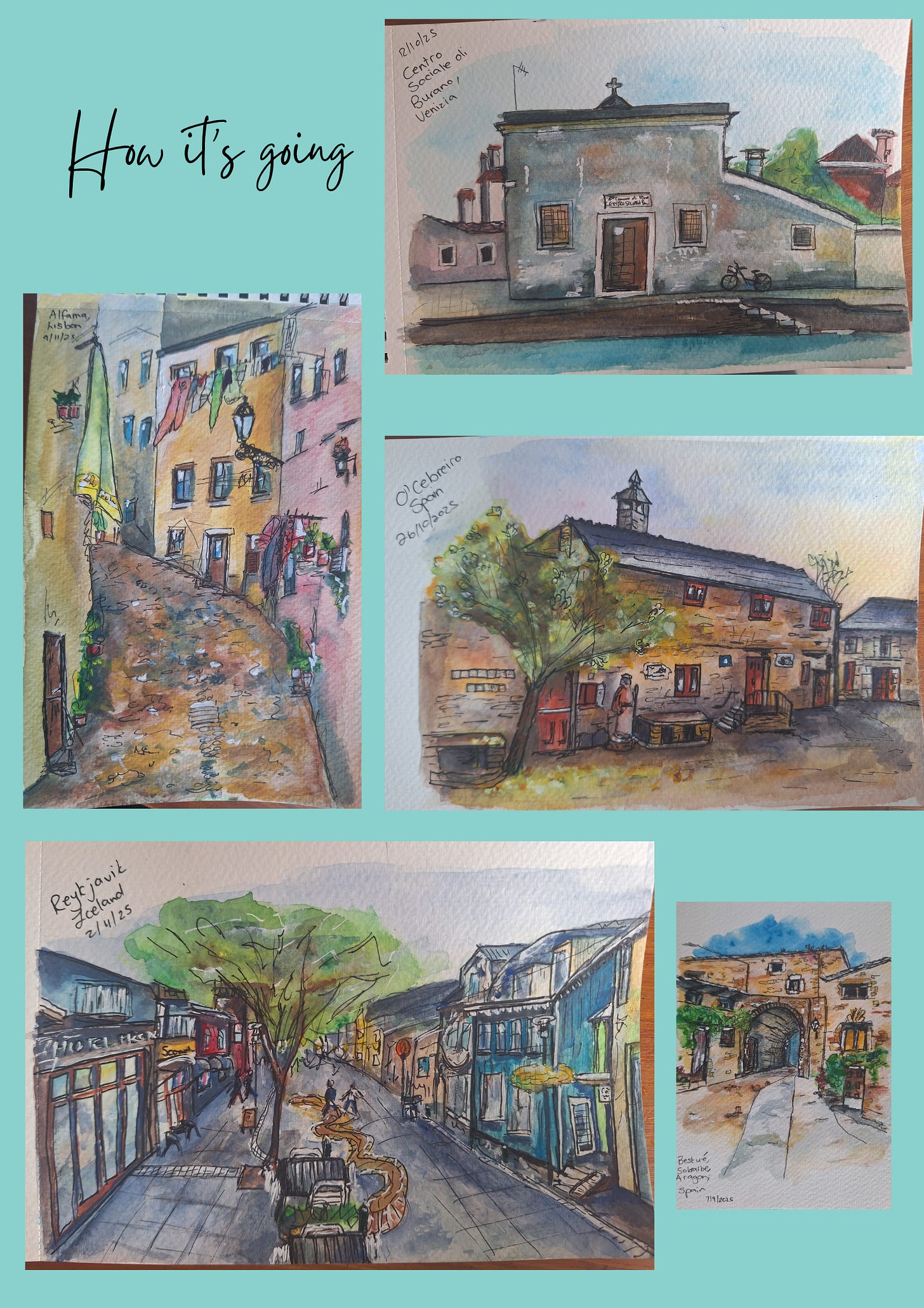 Each week there’s a little progress, in line thickness, grounding, vanishing points, colour balance. And with each brushstroke, a little more confidence and freedom.